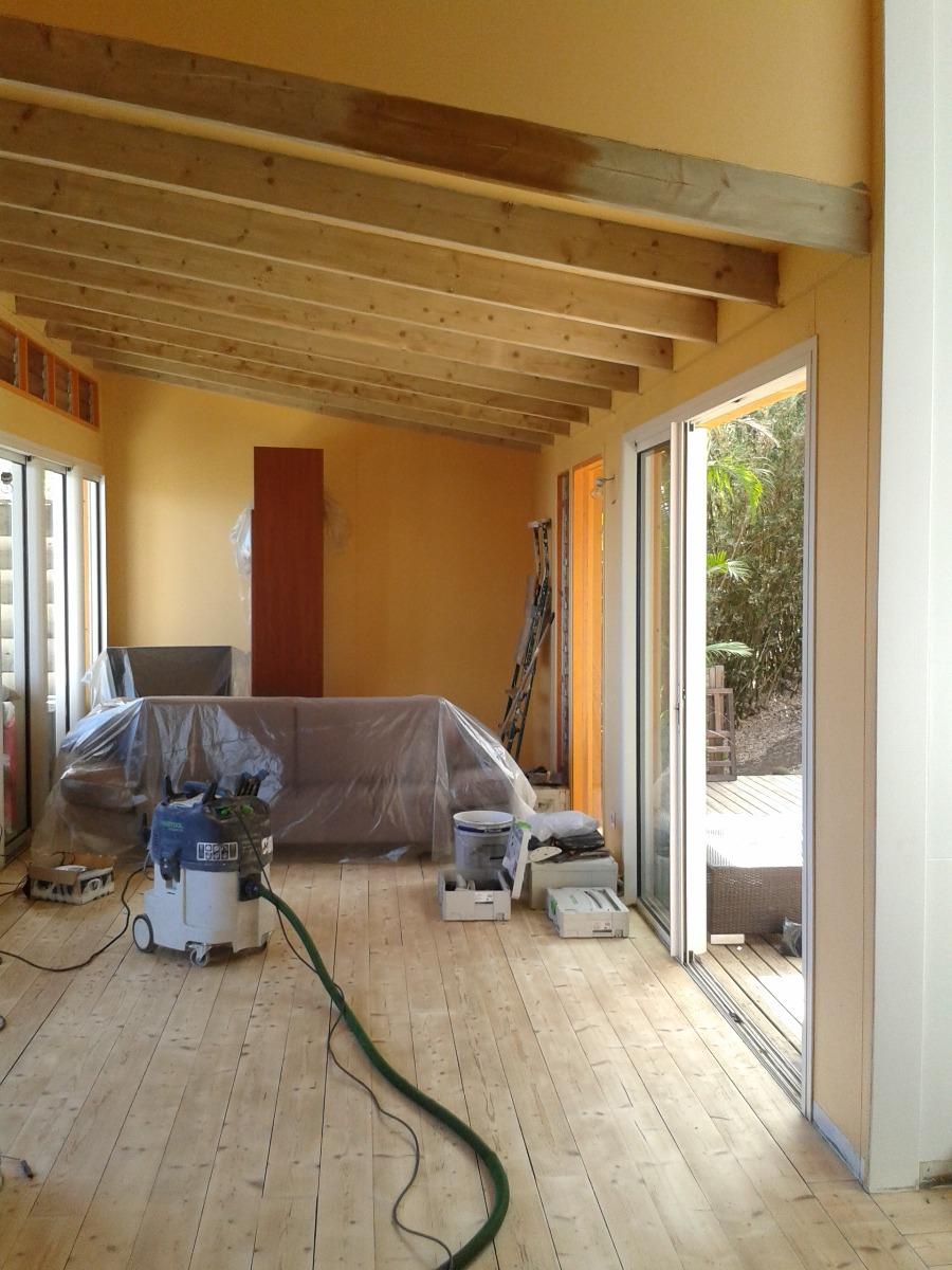 Chantier en cours - Vitrificateur sur le plancher - Lasure sur les poutres - Peinture murs et plafonds 2